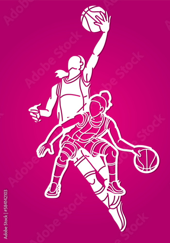 basketball, ball, vector, basket, woman, female, action, active, athlete, athletic, cartoon, champion, club, competition, dunk, dripping, game, graphic, illustration, jump, people, play, player, running, shoot, silhouette, slam, sport, strength, team, isolated, throwing, girl, strong, fitness, person, logotype, outline, line, group, brush, together, symbol, signs, background