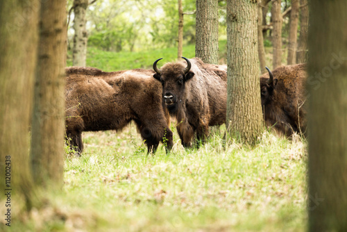 Group of bisons in forest