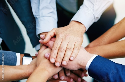 Group of business people holding hands. Concept of partnership, collaboration, teamwork, cooperation, trust, unity.