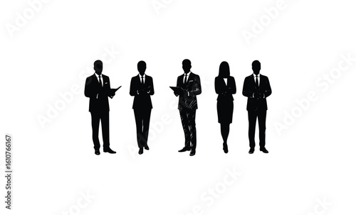 group, formal, silhouetted, business, professional, suit, silhouette, teamwork, corporate, office, collaboration, meeting, male, female, attire, elegant, standing, posture, confident, leadership, strategy, planning, executive, management, colleague, partnership, diversity, oneness, networking, communication, success, career, workplace, professional, black, white, collective, businessperson, illustration, concept, abstract, shadow, outline, silhouette