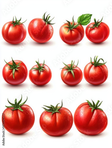 Group of Fresh Red Tomatoes Displayed on White Background Close Up Studio Shot Still Life Food Photography