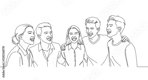 friends, laughing, fun, group, white, enjoyment, happiness, joy, celebration, together, socialising, diversity, youth, male, female, expression, interaction, friendship, smile, casual attire, relaxed, cheerful, bonding, positive, connection, laughter, gathering, camaraderie, emotion, casual clothes, modern, line art, illustration, leisure, joyful, excitement, community, vibrant, togetherness, playfulness, friendly, expressive