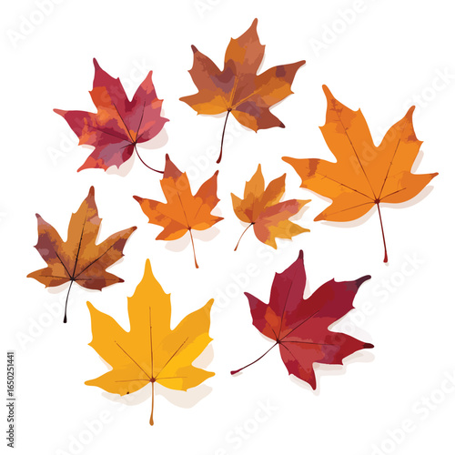 Group of maple leaves with autumnal colors on a white background evoking a season of change Perfect for seasonal design projects.