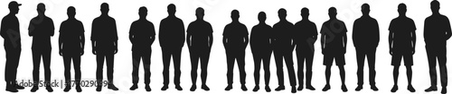 Group of men silhouettes standing together, teamwork concept, male crowd illustration, unity and cooperation, friendship, community connection, diversity, human figures