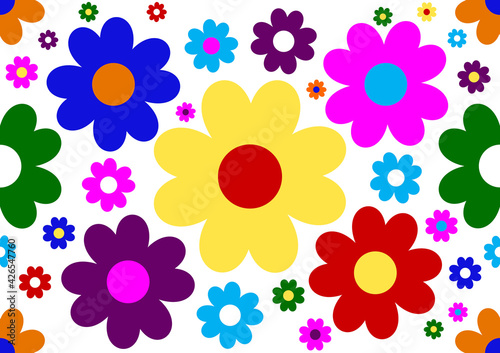 group, many-coloured, blooming, flower, seamless, pattern, background, plant, fashion, wallpaper, ornament, illustration, green, design, texture, repeat, abstract, blue, yellow, purple, violet, pink, white, light, widener