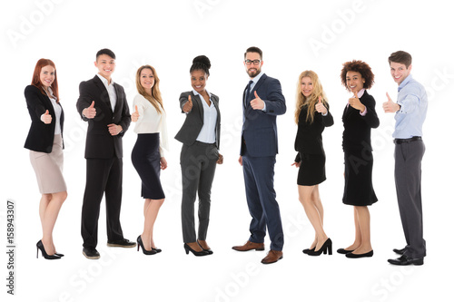 Group Of Multiracial Businesspeople Gesturing Thumbs Up