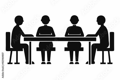 Group of people sitting around a long table, Sitting table flat silhouette vector