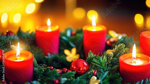 candle, candlelight, decoration, holiday, memorial, mourning, occasion, party, red, remembrance, chaplet, centrepiece, celebration, event, festivity, gathering, place, home, service, solemnity, special