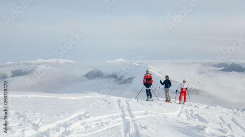 smile, sport, nature, tour, fog, hiking, cloudscape, holiday, forest, happy, skier, group, vacation, summit, sky, slope, weather, landscape, little, white, sledding, winter, ski, top, cloud, trekking, hill, face, family, ice, background, scenic, together, downhill, snow, adult, sunshine, people, mountain, jacket, alpine