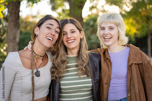 friends, laughing, happy, woman, park, golden hour, friendship, youth, laughter, happiness, joy, fun, people, group, three people, young adult, teenage, diversity, inclusion, togetherness, community, support, hugging, embracing, candid, authentic, real people, lifestyle, casual attire, modern, fashion, style, individuality, sisterhood, connection, weekend, leisure, best friend, girlfriend, cheerful, exuberant, smiling, nature, sunny, portrait