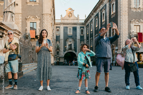 admire, architecture, building, city, life events, group, italian, pedestrian, photo, smartphone, souvenir, square, standing, street, summer, sunlight, holiday maker, town, travel, urban, vacation, view