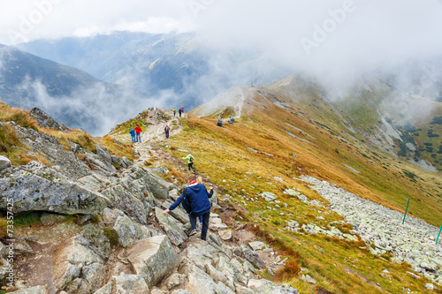 Group of tourists walking in the Tatra Mountains