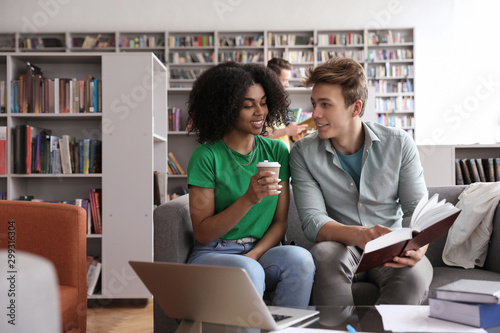 Group of young people studying in library