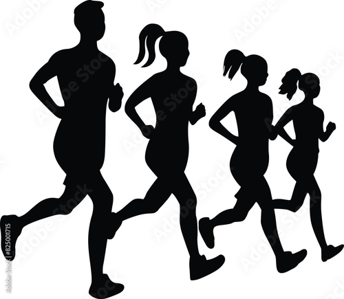 runner, group, silhouette, silhouette, vector, illustration, run, sport, athlete, exercise, jogging, marathon, sport, people