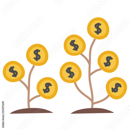 growing, money, investment, currency, marketing, icon, flat, graphic, illustration