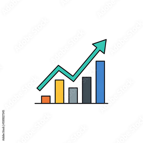 chart, grow, growth, increase, rise, show, climbing, ascending, flat, modern, business, finance, minimalist, bright, optimistic, isolated, presentation, report, datum, arrow, bar, colours, orange, yellow, grey, blue, teal, success, white, progress, improvement, performance, statistic, achievement