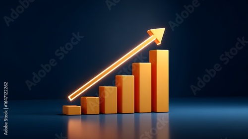 Growth Chart with Rising Orange Bars and Arrow on a Dark Background Highlighting Business Success