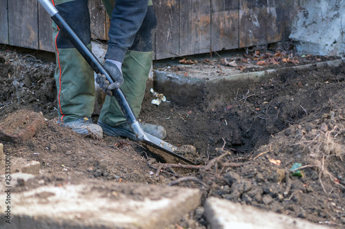 gardener, gardening, landscaping, hole, bucket, excavate, gardening, garden, earth, humus, work, peasant, working man, labor, person, farming, dig, tree, farm, outdoors, ground, nature, workwear, garden maintenance, fashion, shed, barn, hovel, house, board, concrete