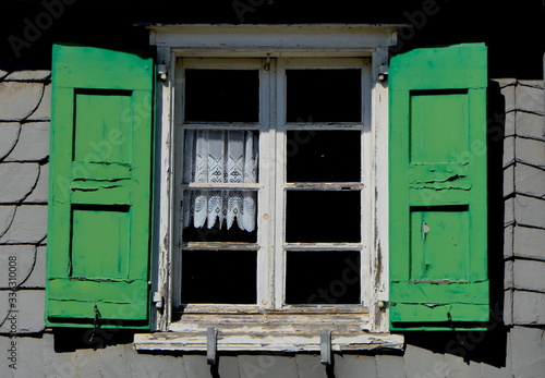 window, house, aged, architecture, door, wall, building, home, forest, wooden, shutter, green, blue, vintage, exterior, veneer, antique, traditional, red, front, detail, village, glasses, frame, green, tradition, historic, slate
