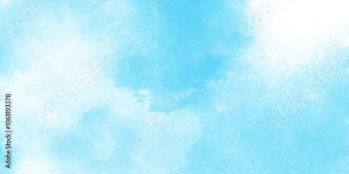 Grunge tint light blue watercolor abstract background, Aquarelle paint paper textured, blue sky with clouds, Sky Nature Landscape Background, sky background with white fluffy clouds.
