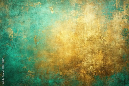 Grungy abstract background with gold and teal tones, distressed textured overlay