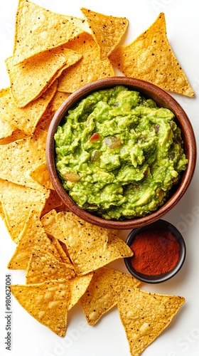 Guacamole sauce and tortilla chips Traditional Mexican food