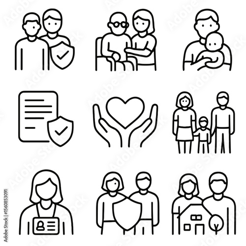 guardianship, care, icon, outline, style, legal, guardian, icon, elder, temporary, foster, role, custody, paper, protective, arm, home, family, visit, caregiver, badge, team, text, label, isolated, transparent