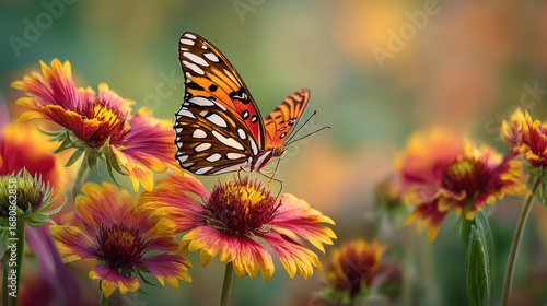 Gulf Fritillary Butterfly on Gaillardia Flower