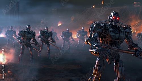 robot, human, war, weapon, armed, futuristic, technology, conflict, military, science fiction, combat, android, cyborg, artificial intelligence, ai, soldier, machine, defense, attack, security, strategy, robotic, automation, danger, force, resistance, uprising, revolution, warfare, advanced, gun, laser, firepower, armored, science, tech, android, mechanical, invention, violent, struggle, battlefield, skirmish