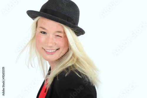 woman, girl, optimism, optimistic, eye, blink, exam, hat, training, successful, future, motivate, motivation, contented, confidence, positive, positive, abitur, passed, isolated, release, eye, success, finger, fun, be glad, friendly, hand, pert, communication, communicative, laugh, smile, natural, youth, youth, high spirits, ok, blond, blond, point