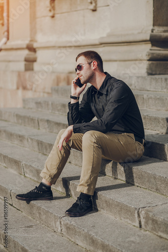 male, caucasian, mobile phone, smart, smartphone, phone, message, technology, communication, mobile, young, lifestyle, portrait, photogenic, man, business, adult, summer, professional, hair, face, alone, style, hand, 1, shirt, youth, fashion, modern, looking, person, street, light, sunlight, goggles, outside, model, watch, black, to sit, stair, footwear