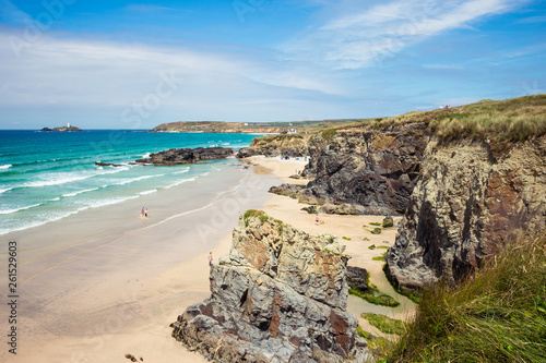 Gwithian Beach, St Ives Bay beach Cornwall uk in summer with people .