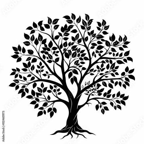 tree, leaf, vector, nature, illustration, tree branch, silhouette, floral, design, flower, art, plant, spring, decoration, ornament, summer, forest, black, pattern, growth, element, season, symbol, autumn, set
