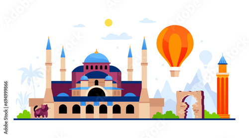 country, national, turkey, architecture, earth, geography, landmark, view, culture, mediterranean, historic, summer, travel, city, istanbul, vacation, city landscape, cathedral, historical, center, trip, sophia, grand, mosque, background, muslim, islam, ancient, cat, mountain, nature, palm, tree, attraction, district, style, landscape, panoramic, design, vector, unusual, concept, idea, quality, graphic, white, illustration, poster