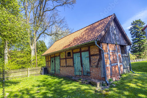 hut, historic, facades, rural, farm, farmhouse, building, german, generic, typical, landmark, exterior, sunny, age, ageing, abandoned, blue, brick, brick, culture, famous, green, house, meadow, old, outdoors, sky, spring, wall, window, wooden