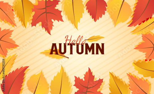Hallo autumn sale background layout decorate with leaves for shopping sale or promo poster and frame leaflet or web banner.Vector illustration template.