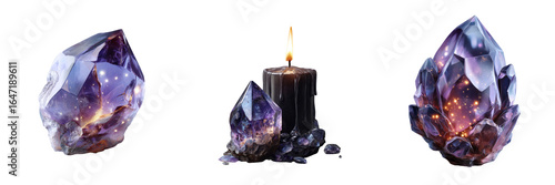 Halloween action mystical crystals with transparent background candlelight glow fantasy environment