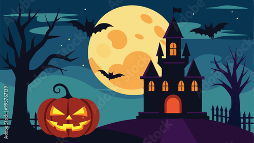 halloween, moon, night, castle, house, pumpkin, bat, haunted, autumn, skittish, tree, horror, vector, holiday, scarey, silhouette, illustration, dark, bat, october, black, cartoon, party, art, celebration