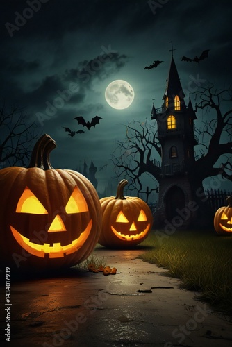 halloween, pumpkin, autumn, night, moon, horror, bat, vector, holiday, skittish, scarey, illustration, tree, dark, celebration, design, october, orange, black, evil, silhouette, fear, sorcerer, sky, bat