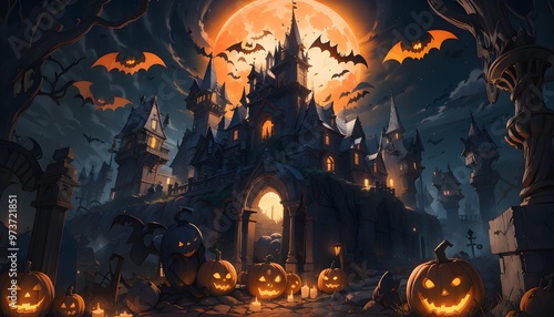 halloween, pumpkin, night, autumn, horror, moon, holiday, bat, dark, illustration, scarey, skittish, october, celebration, orange, silhouette, tree, black, evil, design, party, art, fear, lantern