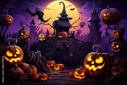 halloween, pumpkin, night, autumn, bat, vector, horror, moon, holiday, skittish, tree, dark, scarey, illustration, celebration, castle, october, party, fear, design, house, silhouette, black, evil, background, sky, cemetery, forest, advertisement, cartoon, fantasy, nature, awe, copy space, death, flying, fog