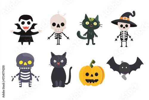 halloween, cartoon, character, vampire, skeleton, bat, pumpkin, cat, skittish, holiday, festive, decoration, celebration, season, october, clip art, icon, flat, design, vector, illustration, cute, monster, magic, party, creepy, fun, graphic, artwork, symbol, icon, set, element, image, drawing, animation, art, collection, template, isolated, card, trick, treat, ghost, evil, spirit, mystical, dark