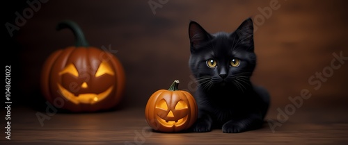 halloween, cat, pumpkin, black, cute, autumn, skittish, festive, sorcerer, celebration, fall, holiday, orange, fantasy, graphic, horror, october, pet, playful, hat, kitten, vegetable, whimsical, cartoon, charming, fun, illustration, animal, decor, design, artistic, cosy, harvest, jack, joyful, minimalist, party, picture, seasonal, tale, three-dimensional, unique, adorable, costume, creature, generative, ai