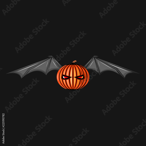 Halloween character pumpkin with bat wings monster. Ghost spooky jack symbol. Scary Allhalloween night background, illustration.