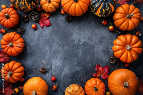 Halloween concept, background, pumpkins on a plain black background, with copy space