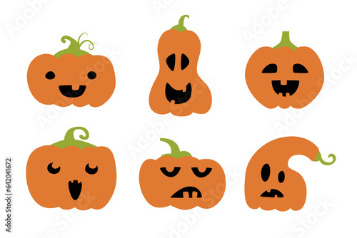 Halloween concept. Set of characters - six scary pumpkins.