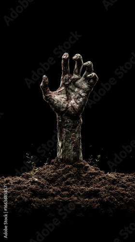 Halloween, dead hand coming out from the soil cruel, zombie, human, cross, devil, undead, pain