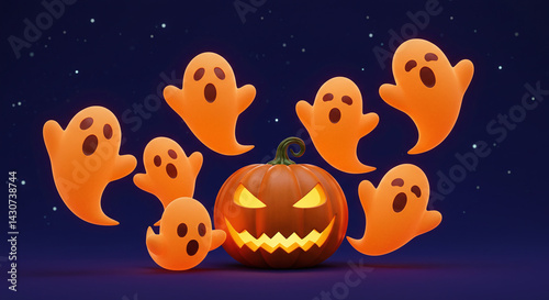halloween, ghost, pumpkin, decoration, skittish, orange, night, eerie, festive, holiday, celebration, autumn, joyful, playful, animated, symbol, tradition, fright, fun, gathering, surprise, mythology, seasonal, cartoon, cheerful, creativity, character, vibrant, glowing, expression, mystery, happiness, family, culture, frightful, whimsical, joy, magic, story, storytelling, excitement, atmosphere, artistry, fantasy, event