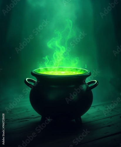 Halloween Green Potion Bubbling in Witch’s Cauldron