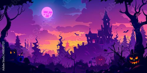 Halloween Haus mit Figuren als Hintergrundmotiv